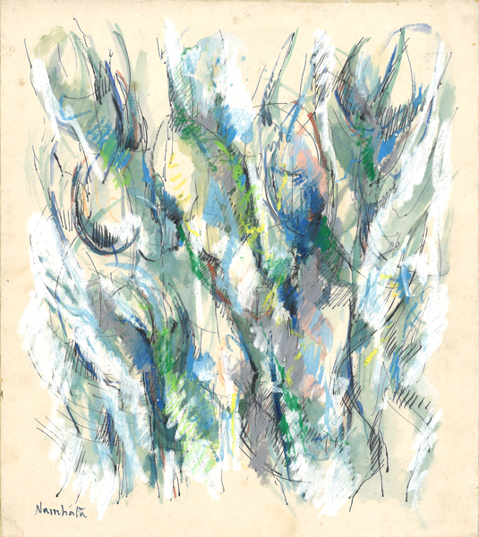 (作品1) 難波田龍起 この作品について問い合わせる c.1960年 色紙に水彩、インク、パステル イメージサイズ:25.0×21.0cm シートサイズ:27.0×24.0cm サインあり この作品について問い合わせる