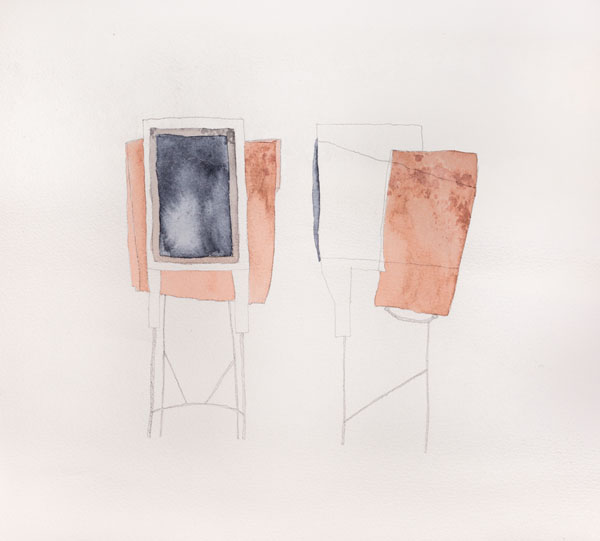 画用紙に鉛筆、顔彩