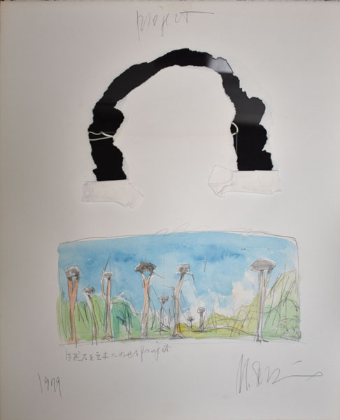 水彩、鉛筆、コラージュ